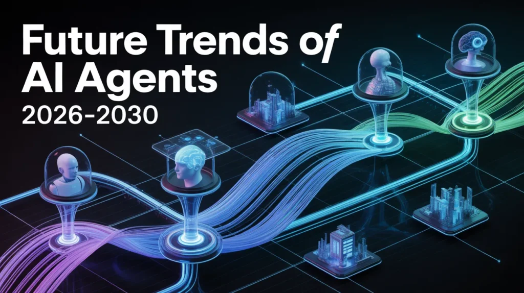 Discover the future trends of AI agents from 2026–2030, including autonomous systems, multi-agent collaboration, and integration with research, SEO, and business workflows.